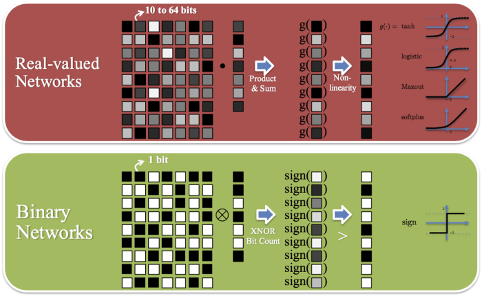 Motivation What if you want to do some real-time face detection/recognition using a deep learning system running on a pair of glasses? What if you want your alarm clock to be able to record and analyze your sleep and conditions around you and come up with the most optimal way of waking you up each … Continue reading Paper Explanation: Binarized Neural Networks: Training Neural Networks with Weights and Activations Constrained to +1 or −1